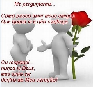 Hoje, feliz, abri meus e-mails, li twitter dos meus seguidores e seguidos, acordei com um pensamento que me ocorreu momentaneamente: ontem foi dia do amigo. Não lembrava, na verdade, não me ligo muito nestas coisas de dia disso, dia daquilo. Também não vou mentir dizendo que não me importo com essas coisas, pois lá no fundinho ligo sim, e creio, talvez um pouco ingenuamente, mas com coragem, que todas as pessoas ligam, principalmente aqueles que mais ferrenhamente dizem não se importar. Outros dirão: coisa de homem, não se liga em datas. Eu digo: coisa de pessoas relapsas que não aproveitam estas pequenas oportunidades de demonstrar toda a beleza do ser humano, reviradas em gratidão, carinho, amor, respeito e enfim, AMIZADE.